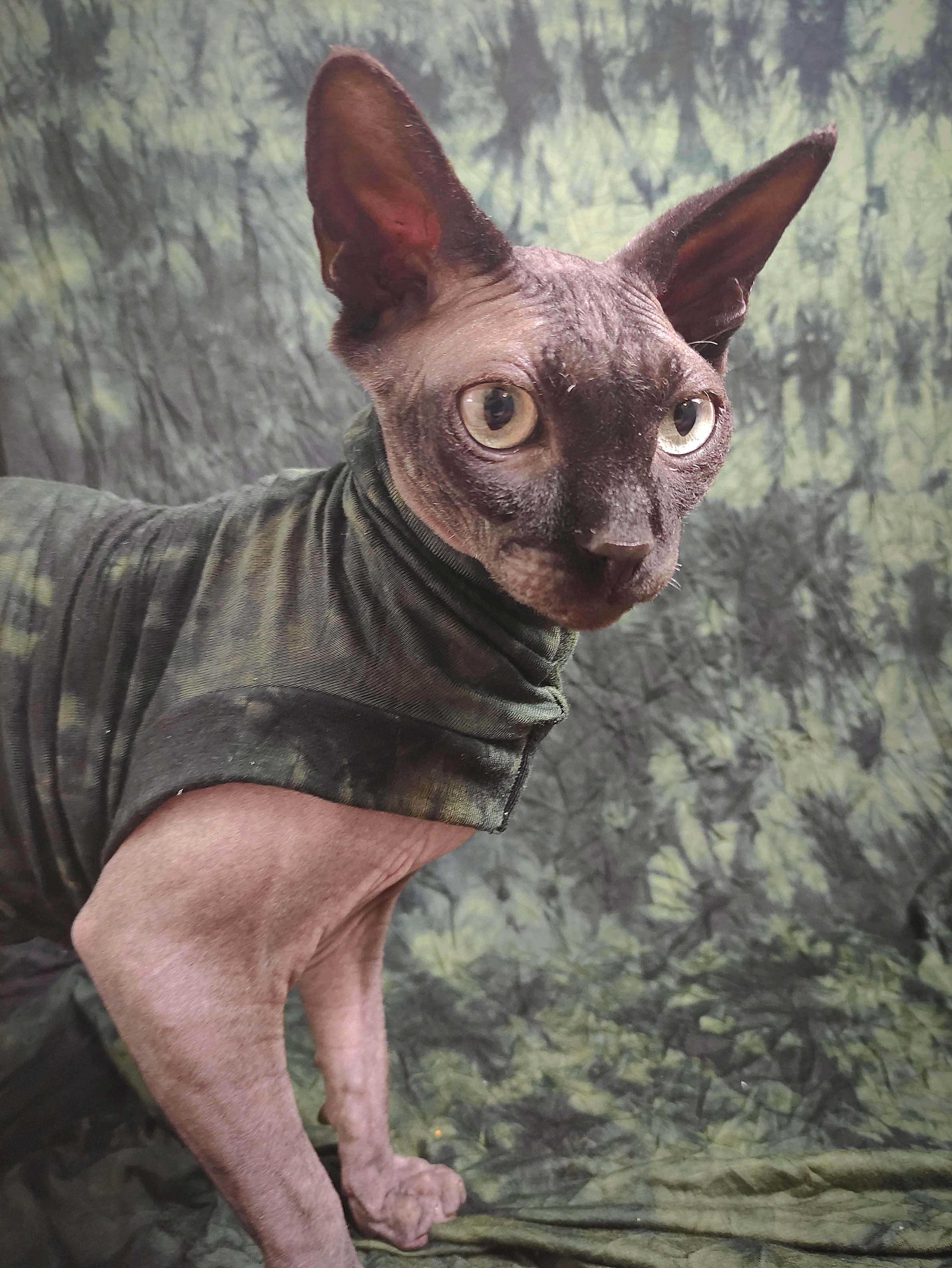 REGULAR size is for most adult hairless cats age 1 to 18. BAMBINO size fits hairless kittens age 6 months to 1 year and smaller adult cats. ANKLE BITER size fits kittens 15 weeks to 6 month olds. LIL NIPPER size fits hairless kittens age 8 weeks to 15 week olds for when they are with the breeder or for the trip home. Custom orders are welcome for larger and smaller cats - pricing is the same - $27.50