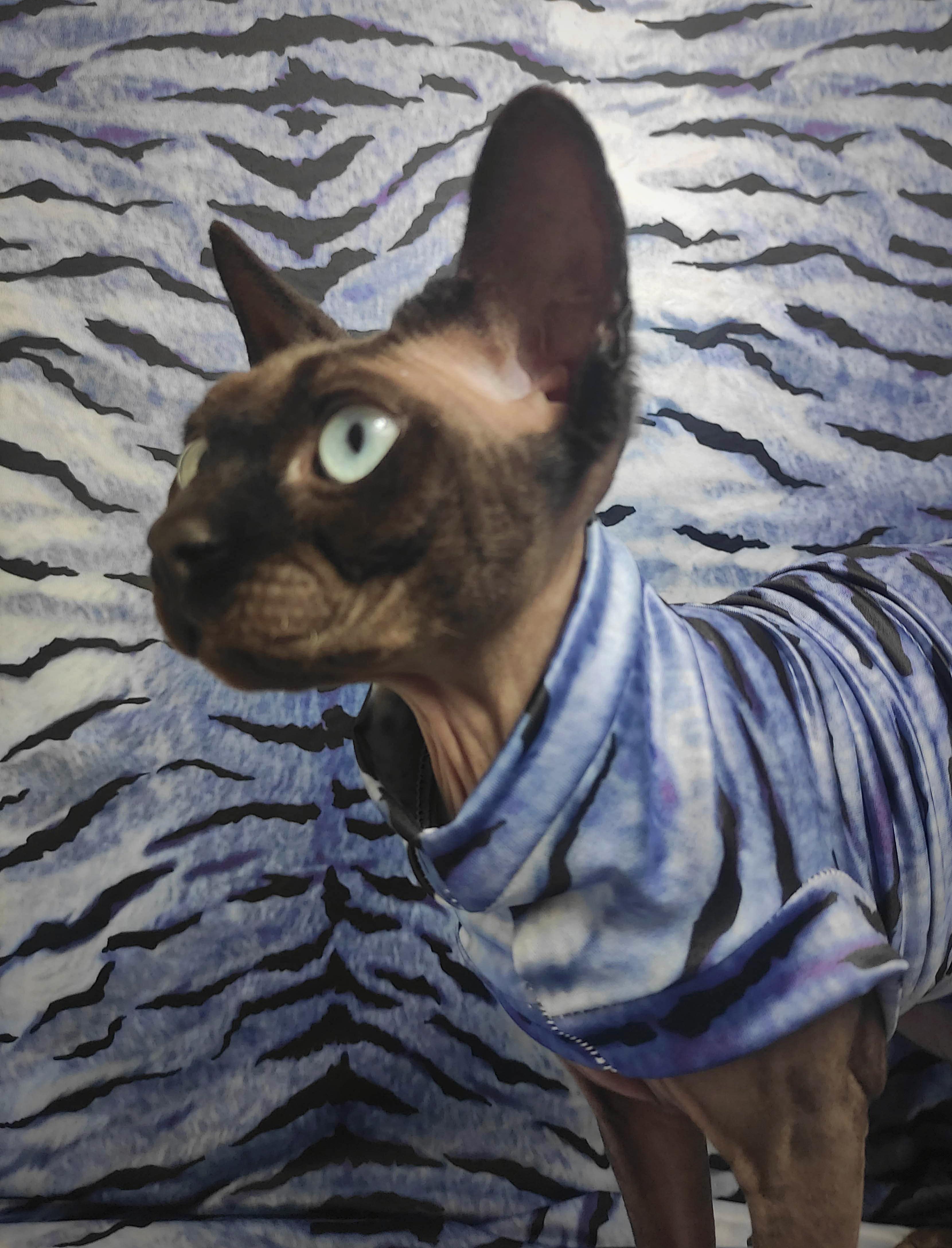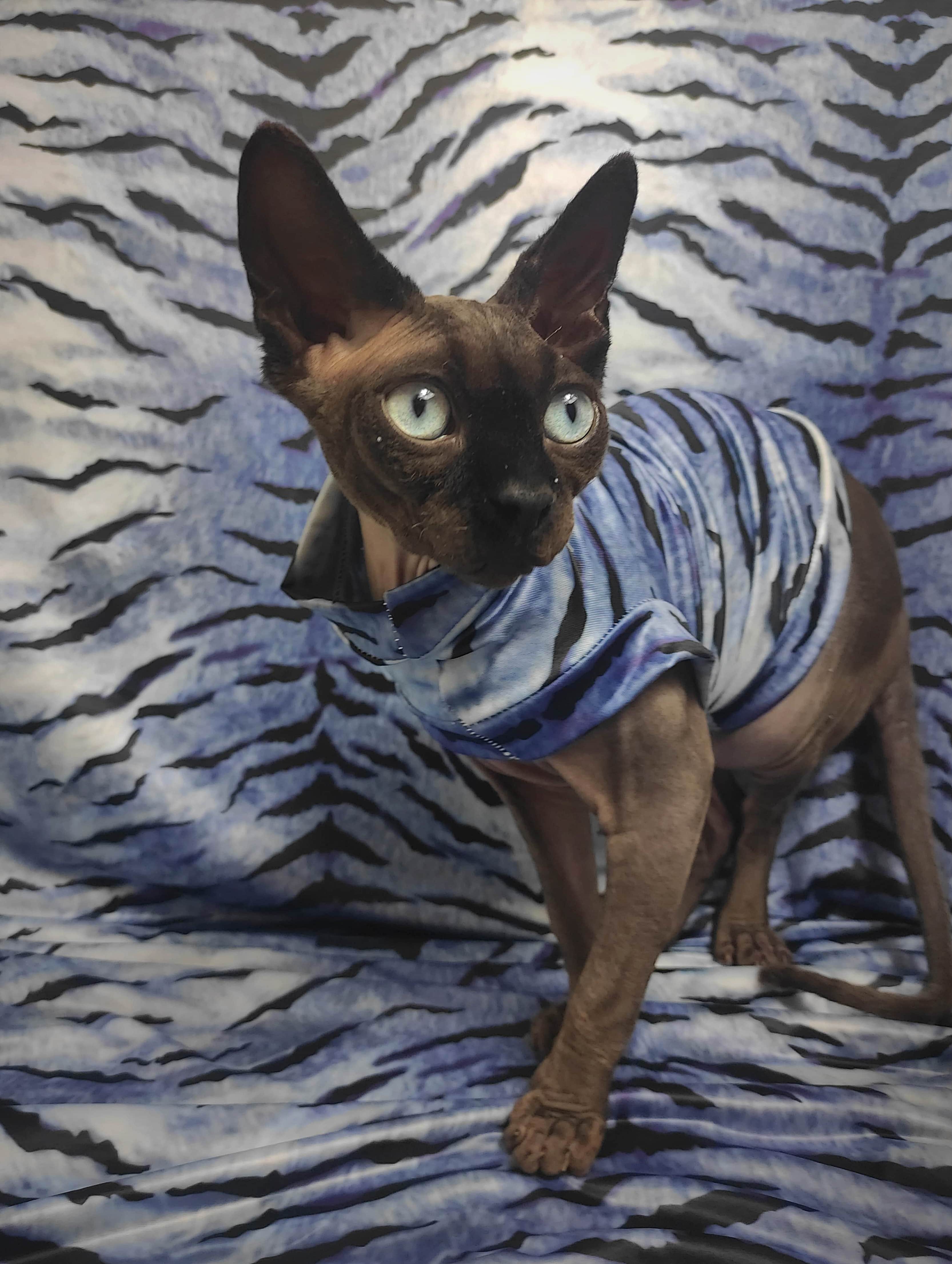 This is a beautiful vibrant blue tiger print. Swimwear is made from stretchy spandex fabrics that dry quickly, have a slimmer fit, larger armholes, and smaller trim that provides much needed calm and extra comfort for cats during bath time πΏπ Made with special seams that minimize the seem profile. Regular Size limited to only 8. Bambino Size is limited to only 8, Ankle Biter Size is limited to 3, Lil Nipper Size is limited to 3. No more will be made when they are gone.