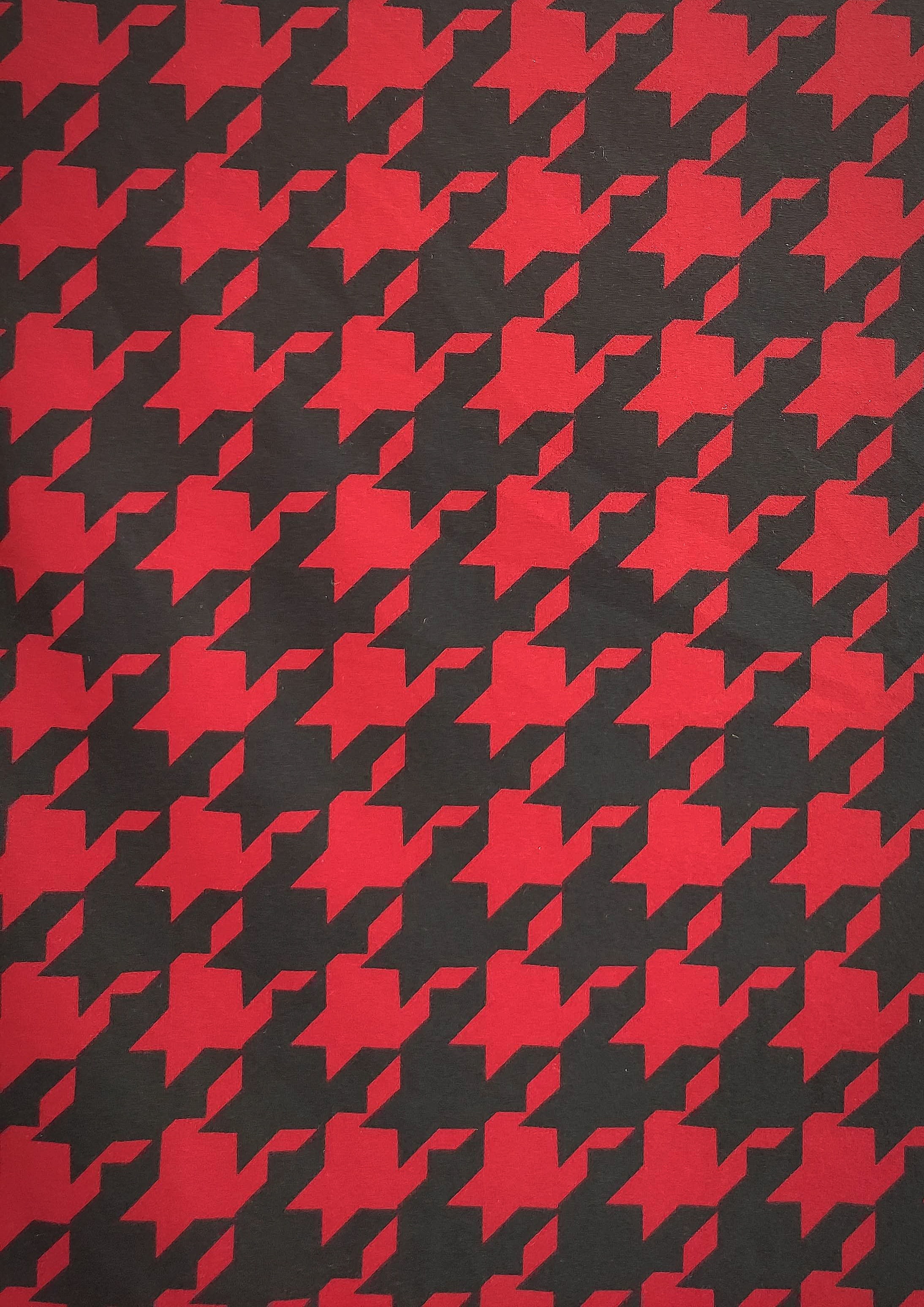 This sleepwear is a beautiful stretchy cotton blend fabric with printed red and black houndstooth pattern. Each will be very different. Made with special seams that minimize the seem profile. Swag Sleepwear has a slimmer fit, larger armholes, and smaller trim to provide extra snuggly comfort for sleeping or catnapping! Regular Size limited to only 7. Bambino Size is limited to only 8, Ankle Biter Size is limited to 2, Lil Nipper Size is limited to 2. No more will be made when they are gone.