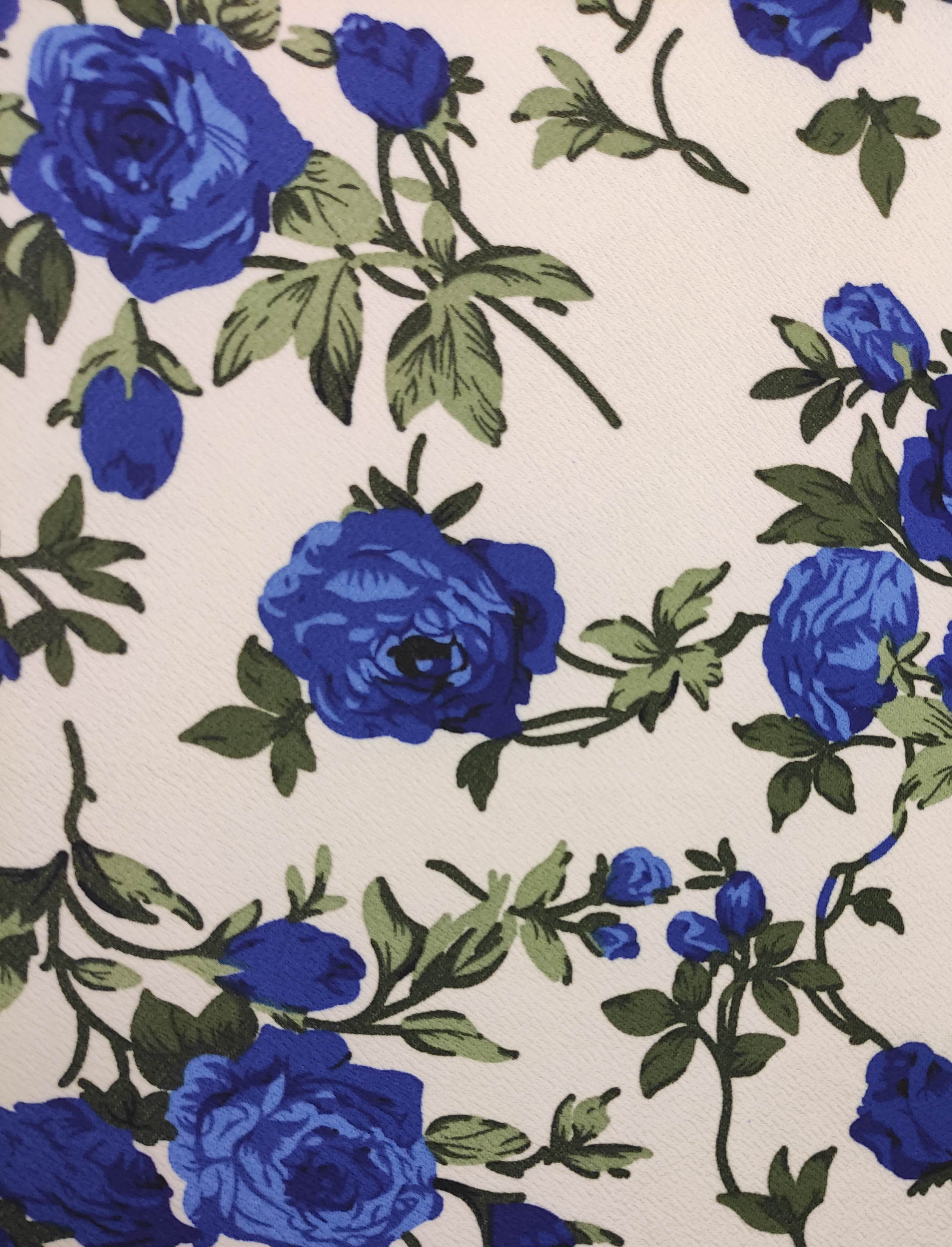This is a beautiful poly spandex stretchy abstract printed fabric with blue roses on white background. Regular Size limited to only 9. Bambino Size is limited to only 10, Ankle Biter Size is limited to 2, Lil Nipper Size is limited to 2. No more will be made when they are gone.