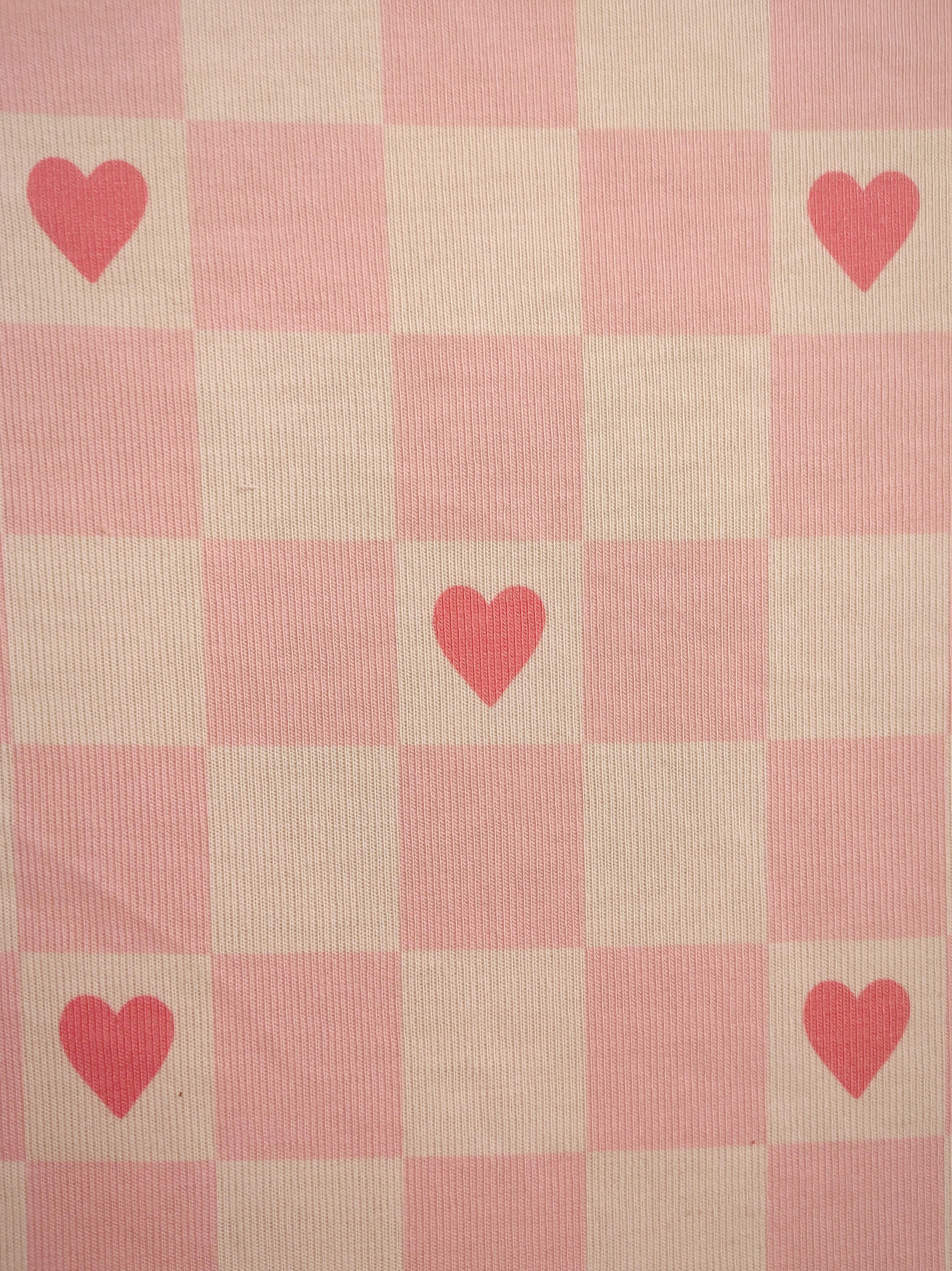 This is a soft lightweight stretchy white sweatshirt fleece (fleeced interior) with printed plaid and hearts design😻