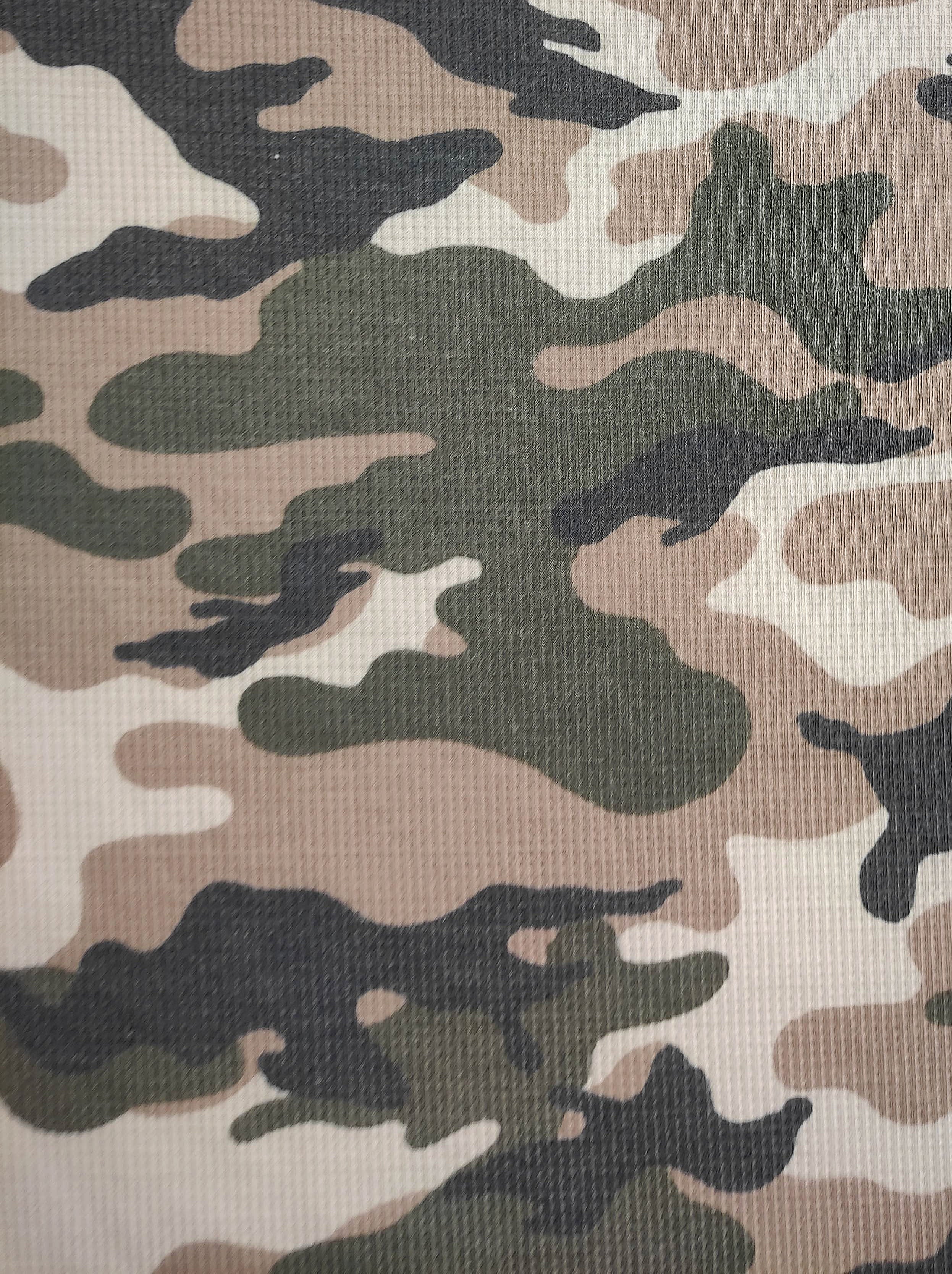 This is a stretchy midweight printed camo thermal fabric. Regular Size limited to only 9. Bambino Size limited to only 8. Ankle Biter Size limited to only 2. Lil Nipper size limited to only 2. No more will be made when they are gone.