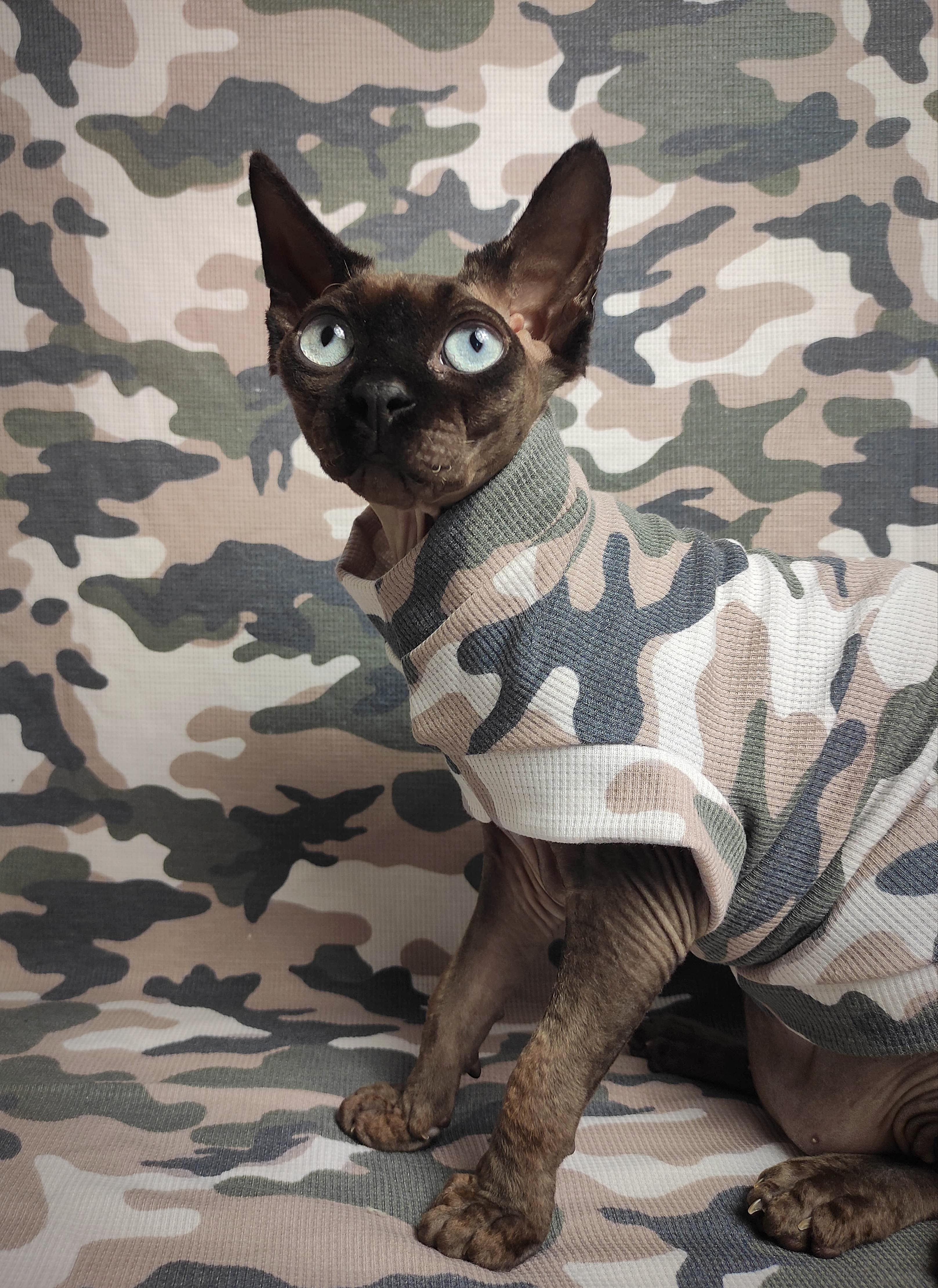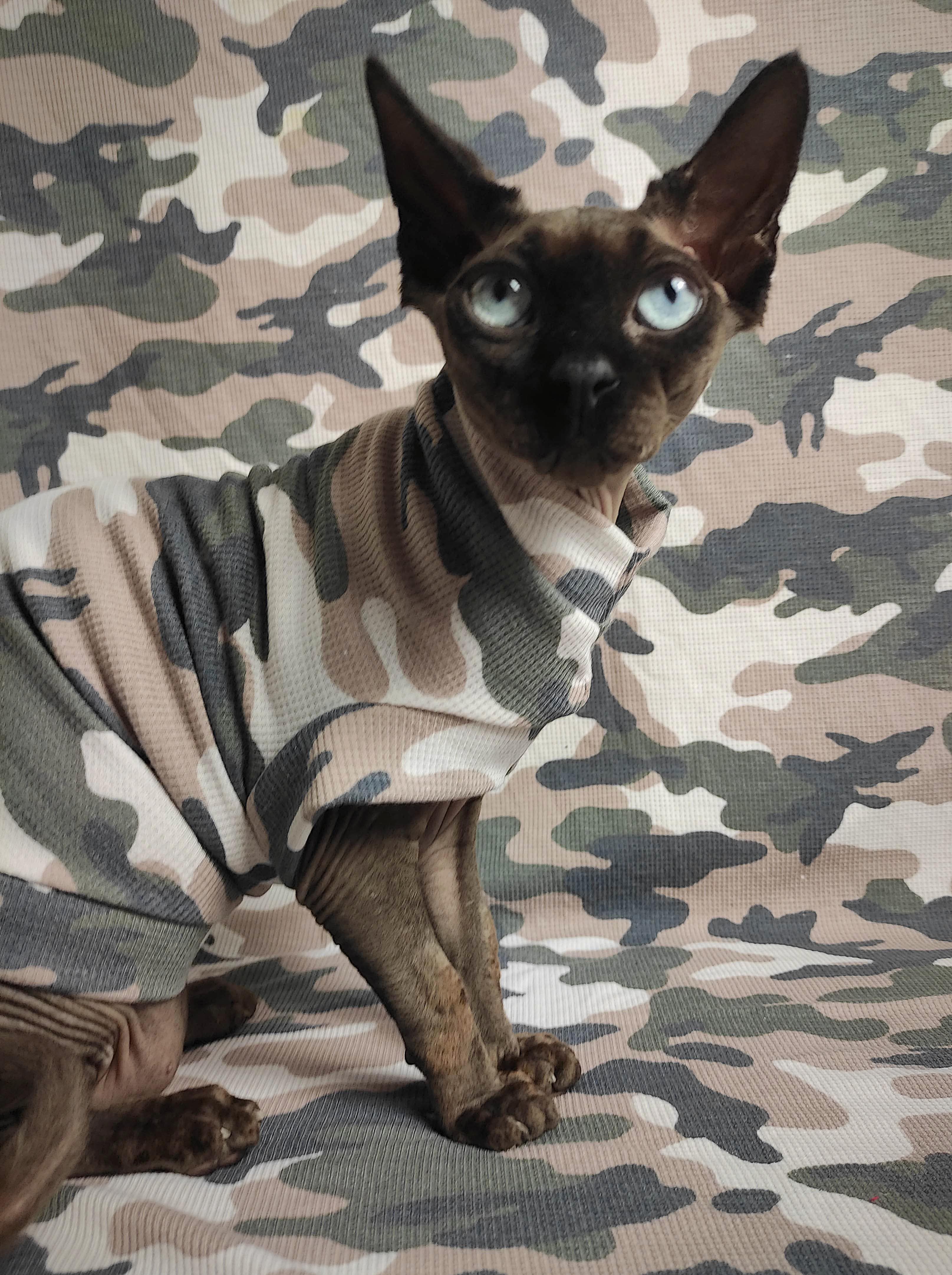 REGULAR size is for most adult hairless cats age 1 to 18. BAMBINO size fits hairless kittens age 6 months to 1 year and smaller adult cats. ANKLE BITER size fits hairless kittens 15 week to 6 month olds. LIL NIPPER size fits hairless kittens age 8 weeks to 15 week olds for when they are with the breeder or for the trip home. Custom orders are welcome for larger and smaller cats - pricing is the same - $27.50