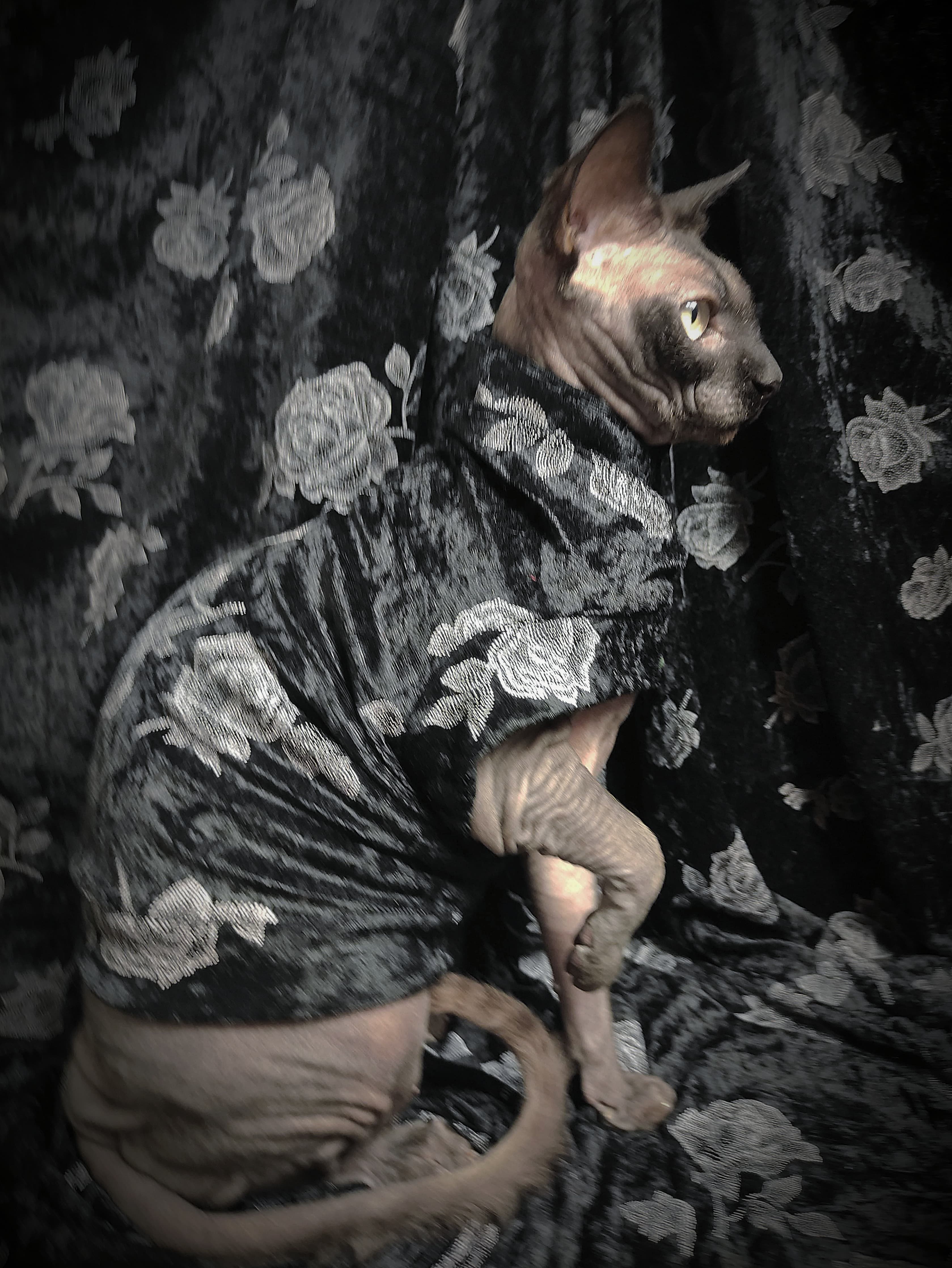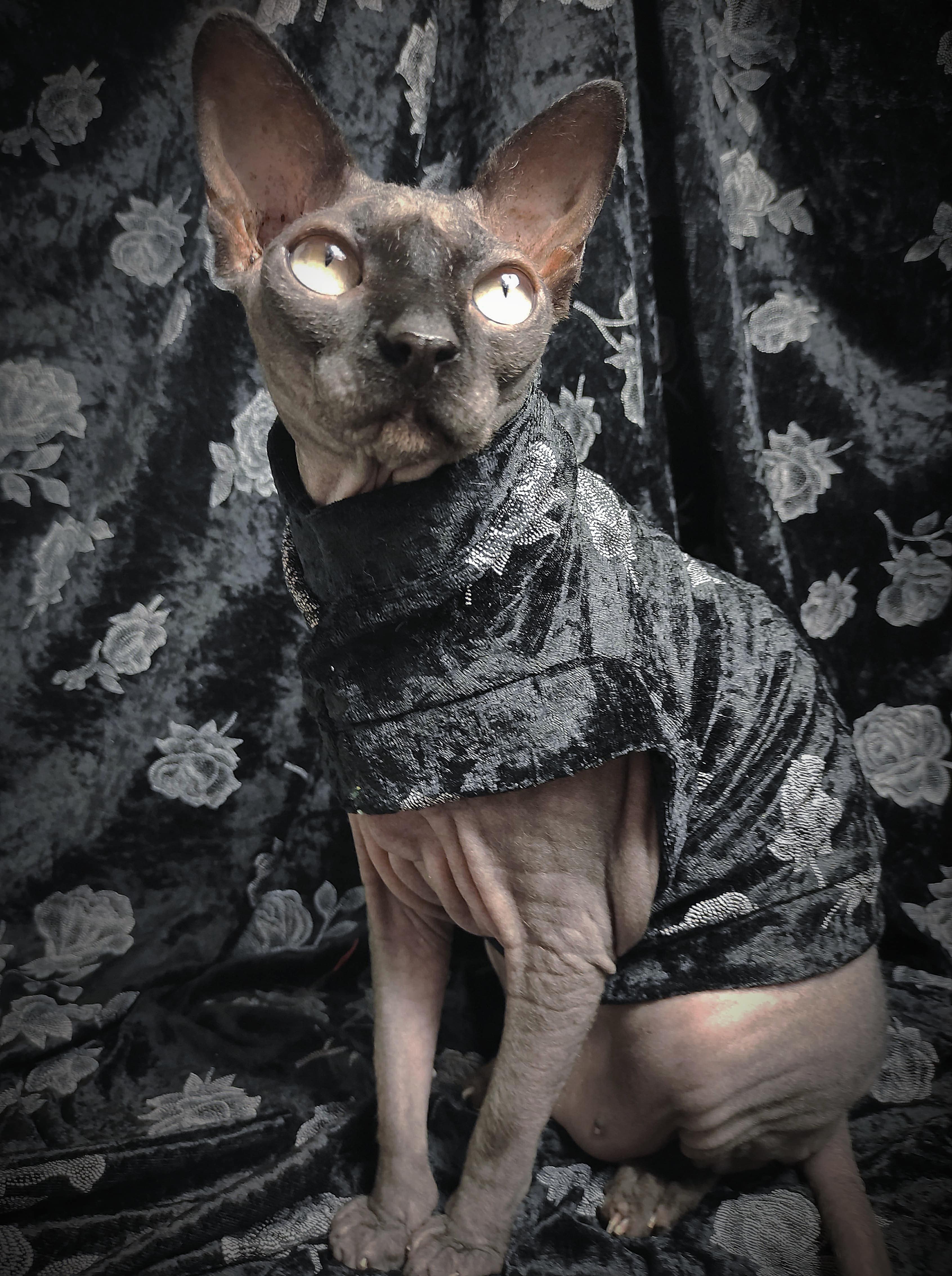 REGULAR size is for most adult hairless cats age 1 to 18. BAMBINO size fits hairless kittens age 6 months to 1 year and smaller adult cats. ANKLE BITER size fits kittens 15 weeks to 6 month olds. LIL NIPPER size fits hairless kittens age 8 weeks to 15 week olds for when they are with the breeder or for the trip home. Custom orders are welcome for larger and smaller cats - pricing is the same - $27.50