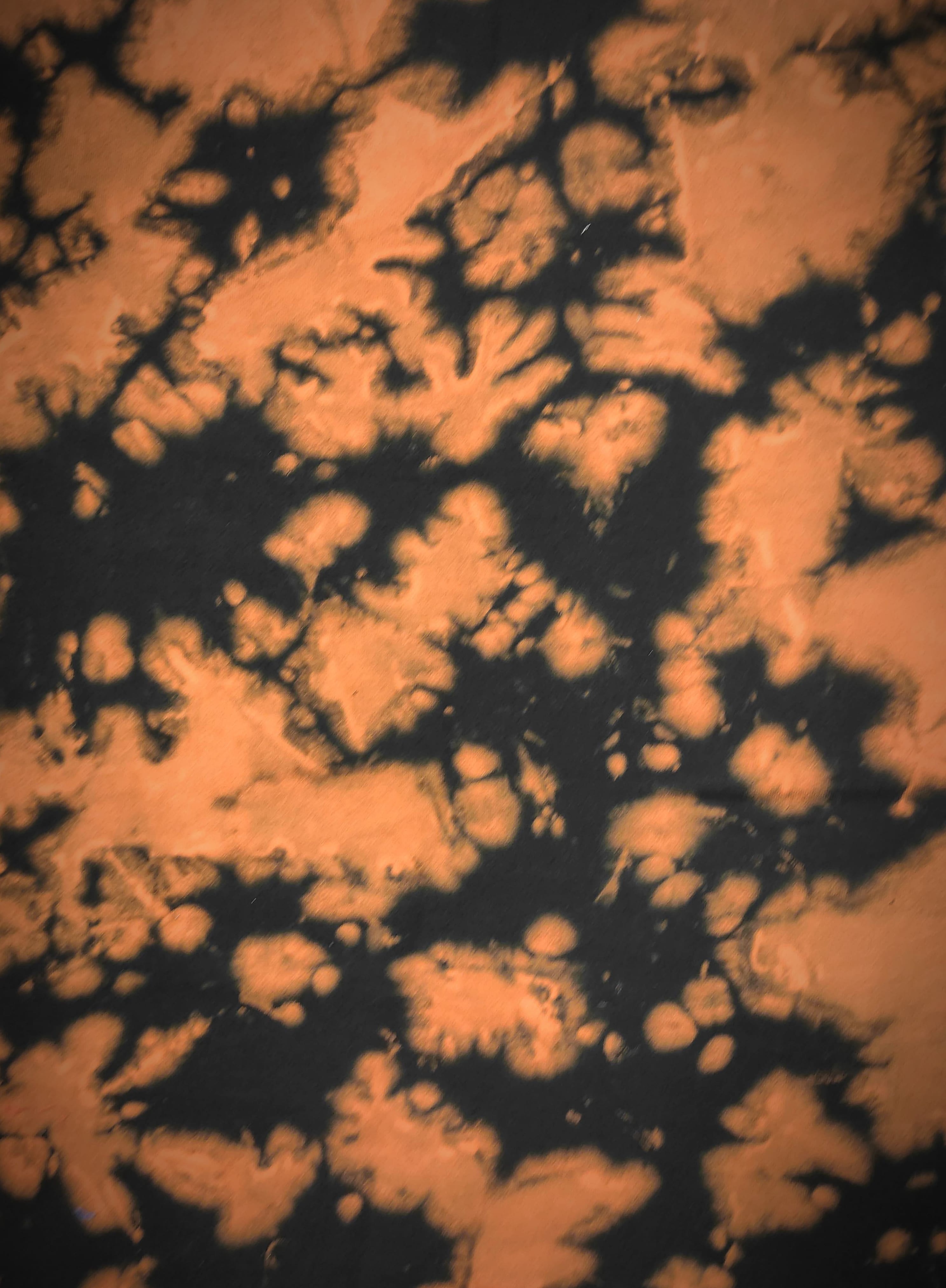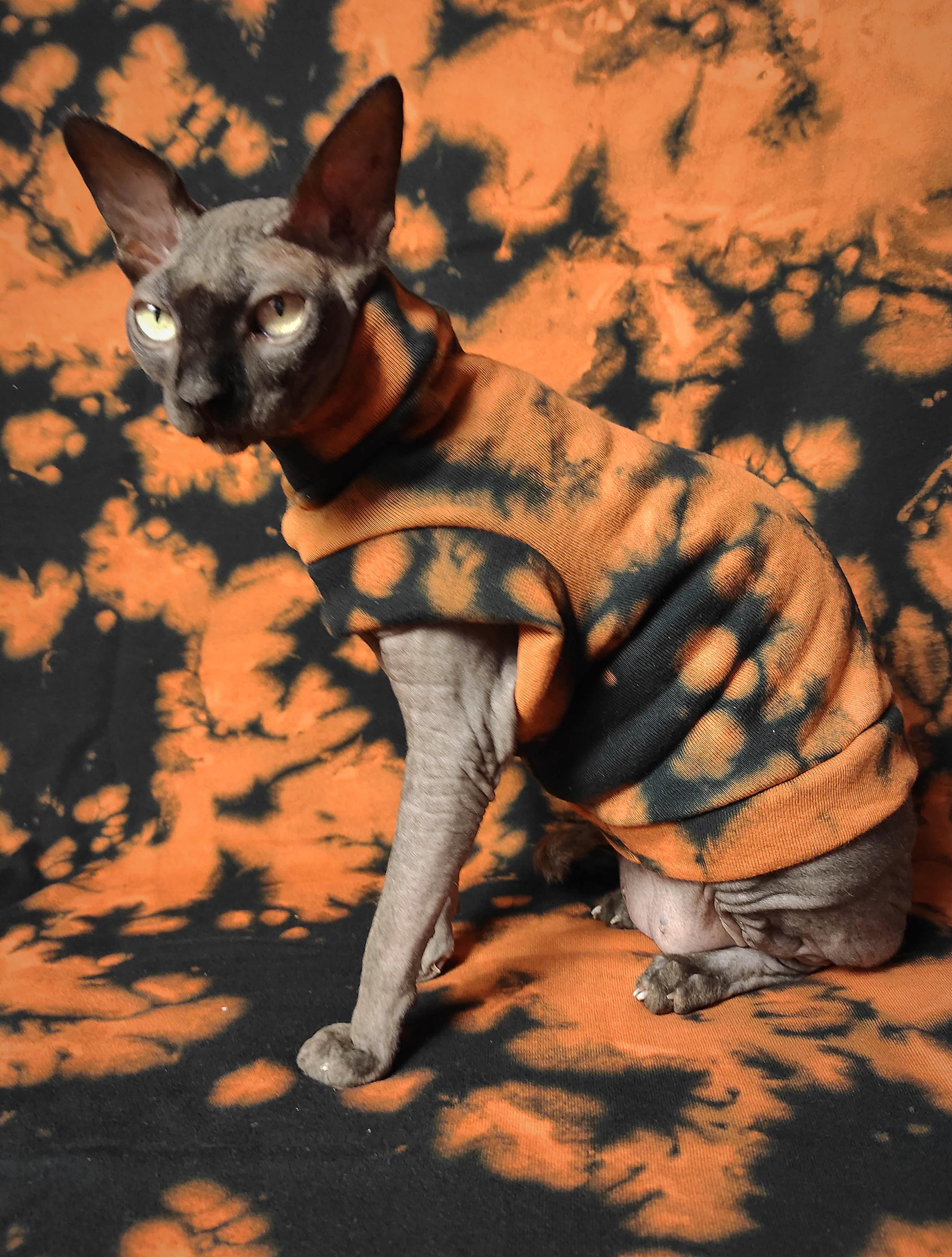 This is a soft feel heavyweight sweatshirt fleece with stretch that has been hand dyed in orange and black (fuzzy interior) 😻