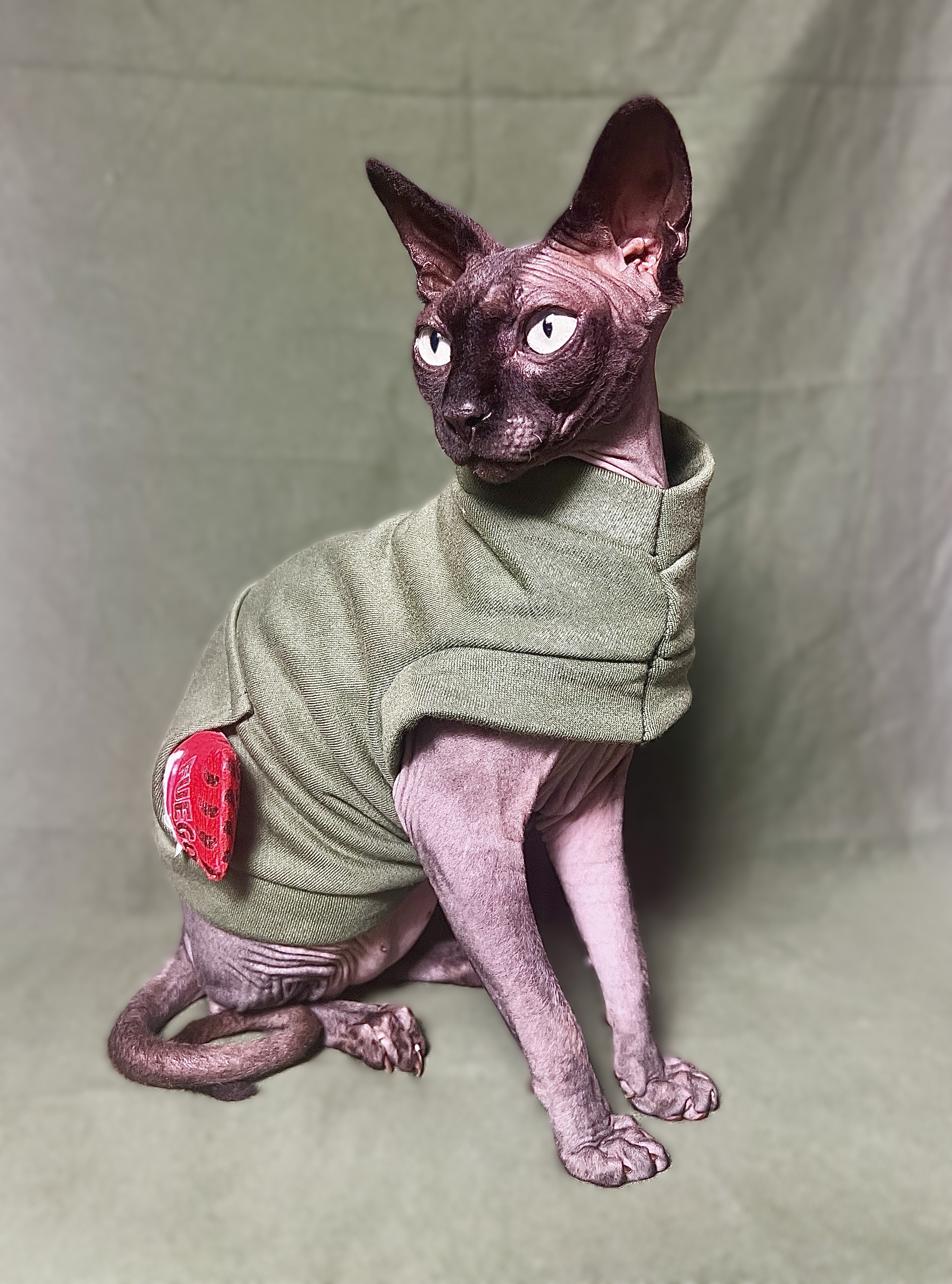 REGULAR size is for most adult hairless cats age 1 to 18. BAMBINO size fits hairless kittens age 6 months to 1 year and smaller adult cats. LIL NIPPER size fits hairless kittens age 8 weeks to 15 week olds for when they are with the breeder or for the trip home. Custom orders are welcome for larger and smaller cats - pricing is the same - $27.50