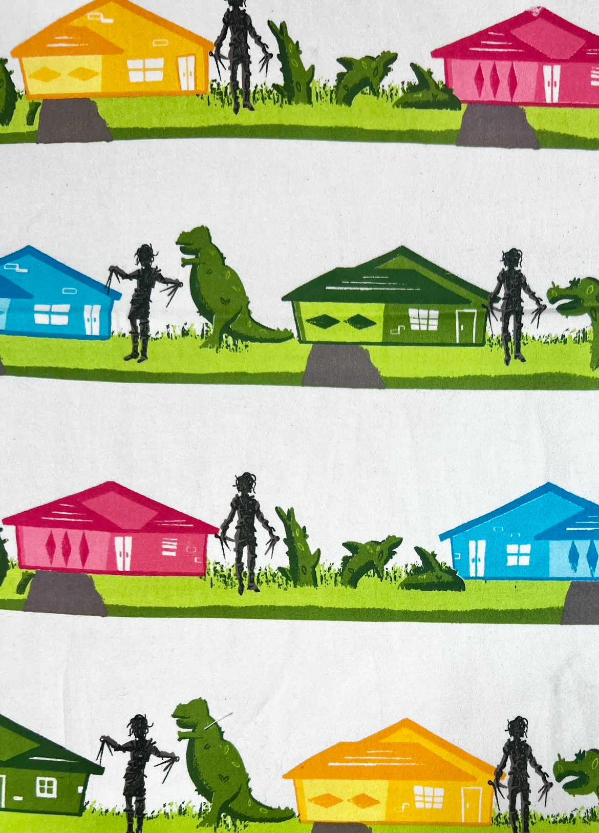 This is an amazing lightweight cotton sateen fabric printed with Tim Burton inspired pattern finished with black velvet trim 😻 Regular Size limited to only 8, Bambino Size is limited to only 7, Ankle Biter Size is limited to 2. Lil Nipper Size is limited to 2. No more will be made when they are gone.