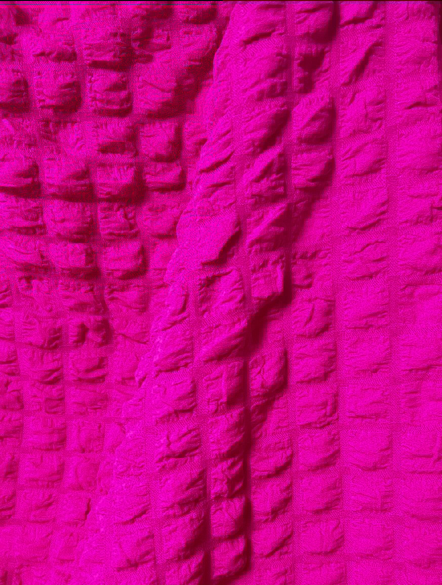 This is a stretchy lightweight pink puckered fabric. Regular Size limited to only 7. Bambino Size limited to only 8. Ankle Biter Size limited to only 2. Lil Nipper size limited to only 2. No more will be made when they are gone.