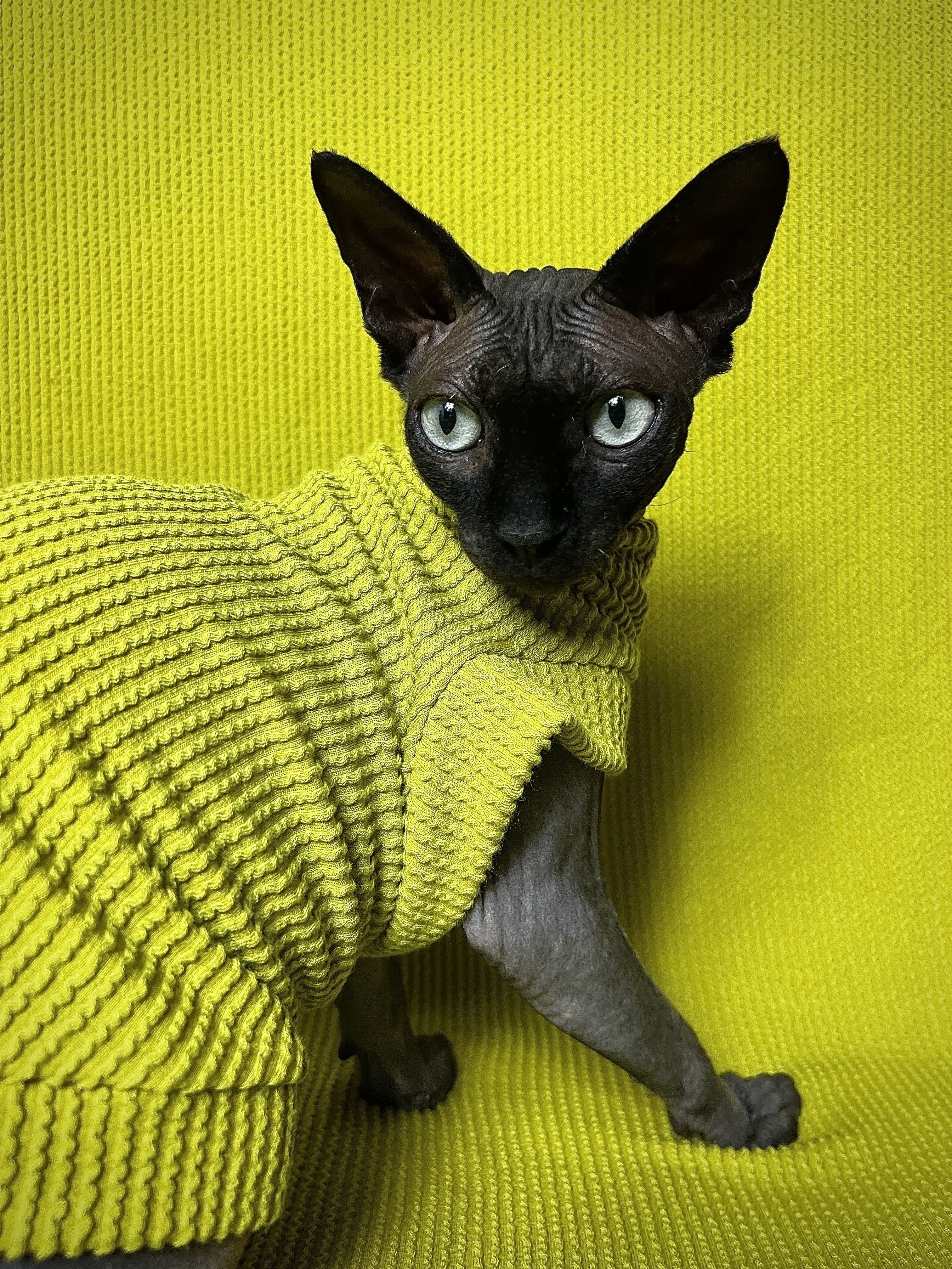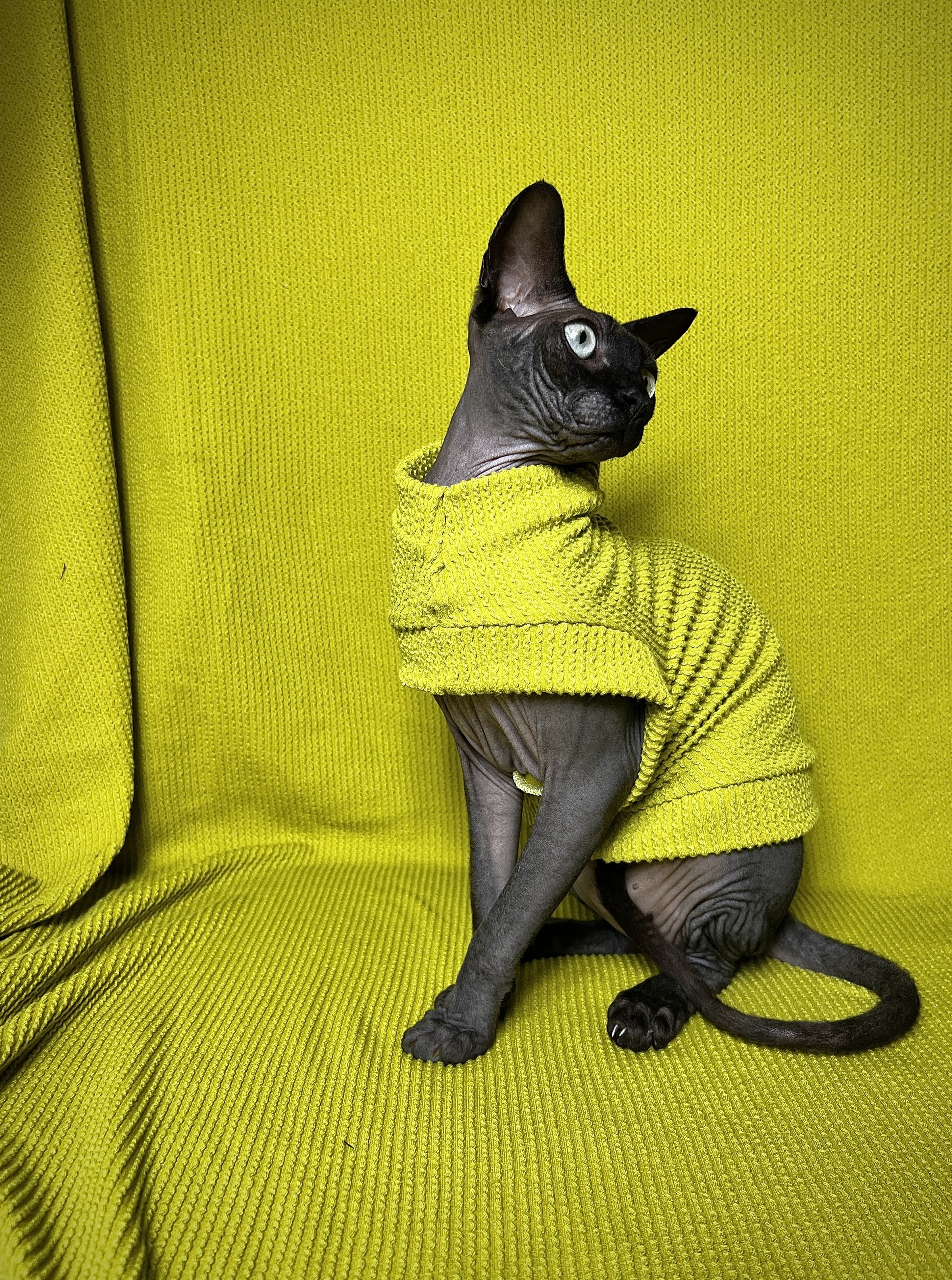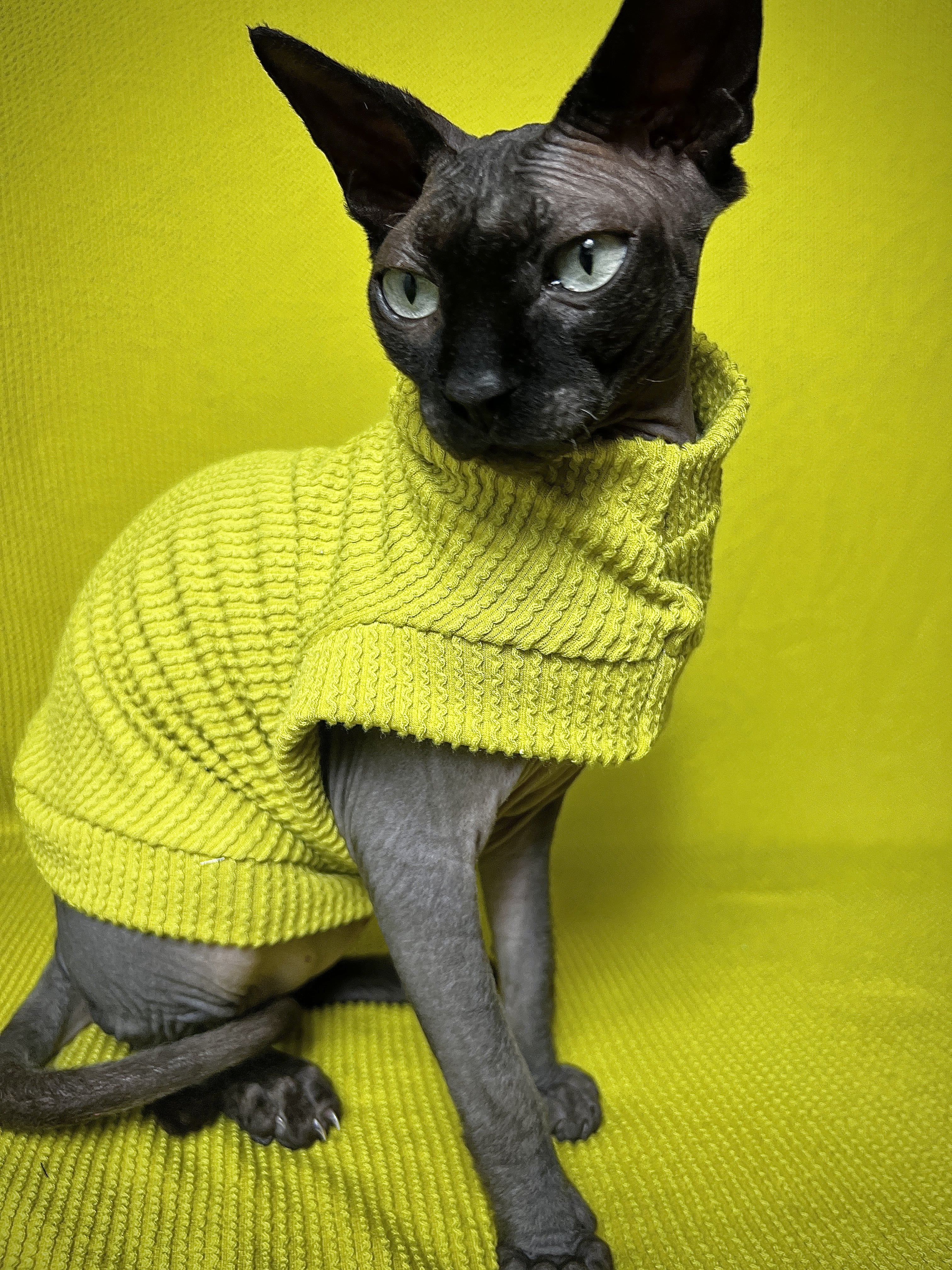 These sweaters fit like no other sweaters. Our original pattern has one hole for both front legs rather than individual holes. The unique design makes it easy to put on and take off, while allowing for improved mobility of your cat. No annoying Velcro anywhere. No awkward walking. All sweaters are machine washable and dryer safe unless specifically mentioned.